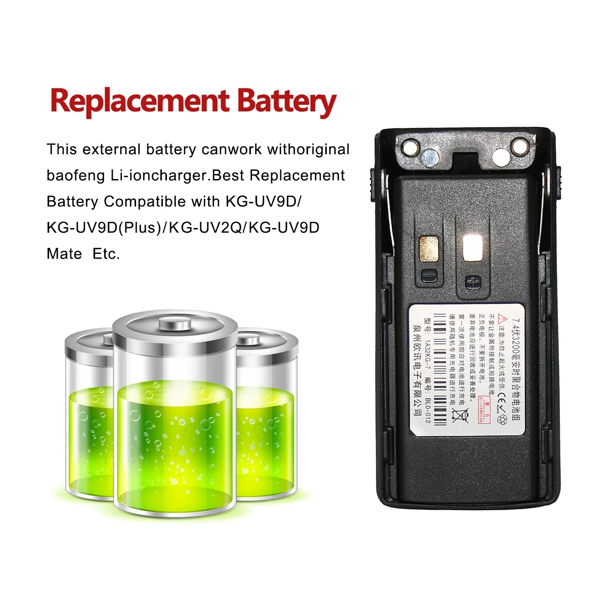 7.4V 3200mAh High Capacity Battery for Wouxun KG-UV9D Plus KG-UV9D KG-UV2Q/KG-UV9DMate Walkie Talkie